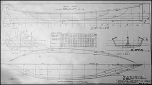 Five-log Poquoson-style log canoe, drawn by S. Kaighn, 19' BP, 6'5" beam, built c. 1880-1910 by W. Knotts, LOC, 67-129-1.