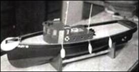 Three sheet plans at 1:24th scale for a vintage gas powered San Francisco tugboat built1913. Full model data including hull frames and deck details for a planked timber hull single screw electric powered. Length 810mm and beam220mm.