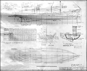 Virginia log-hulled crab dredger, drawn by S. Kaighn, 51'9" BP, 12'10" beam, built in 1909 by J.G. Wornom, LO, 84-30-1.