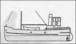Clyde Puffer: A typical traditional steam puffer to a scale of 1:48 giving overall length of 17½in. (444mm) and beam 4½in. (115mm). Drawing shows lines and visible detail, no structure.